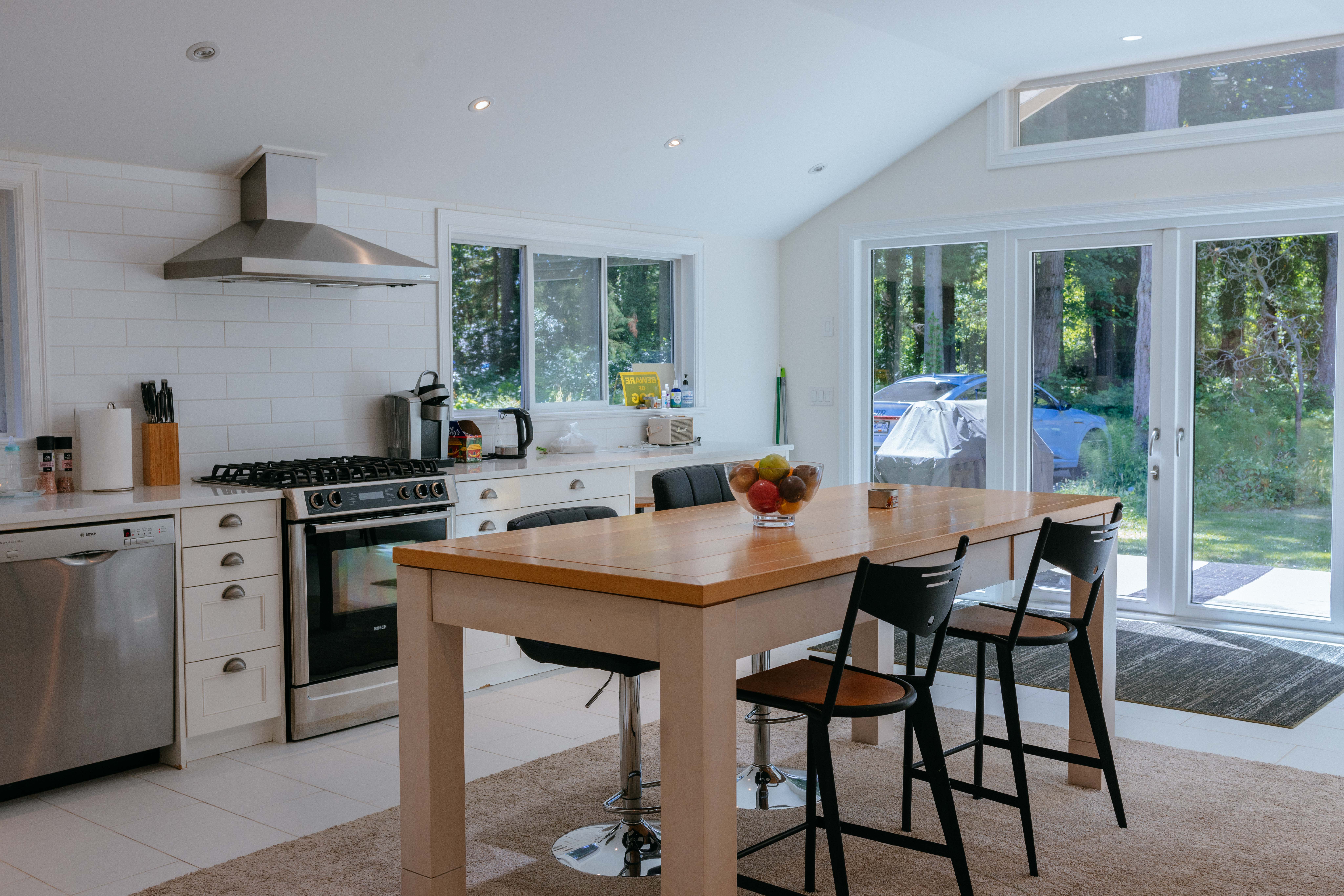 Just a few blocks from a beautiful golf course set on 14 acres, this cozy modern bungalow offers a peaceful escape from the hustle and bustle of daily life. Inside, warm wood accents and a crackling fireplace invite relaxation, while large windows frame picturesque views of the greenery landscape.